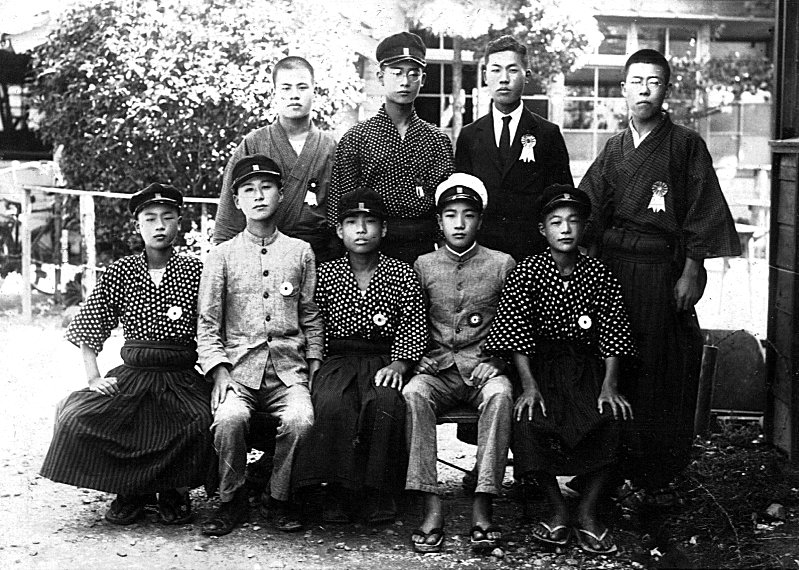があり中央の先生の左にいる詰襟服の生徒が自分の父親であるとのことでした。 .