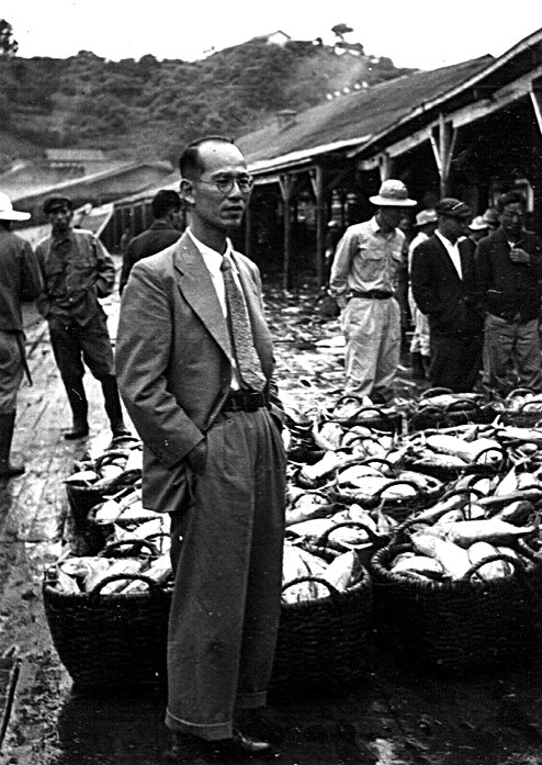 左の写真は気仙沼港でたくさんの鰹が水揚げされていて傍に立っているのが私の父で、85