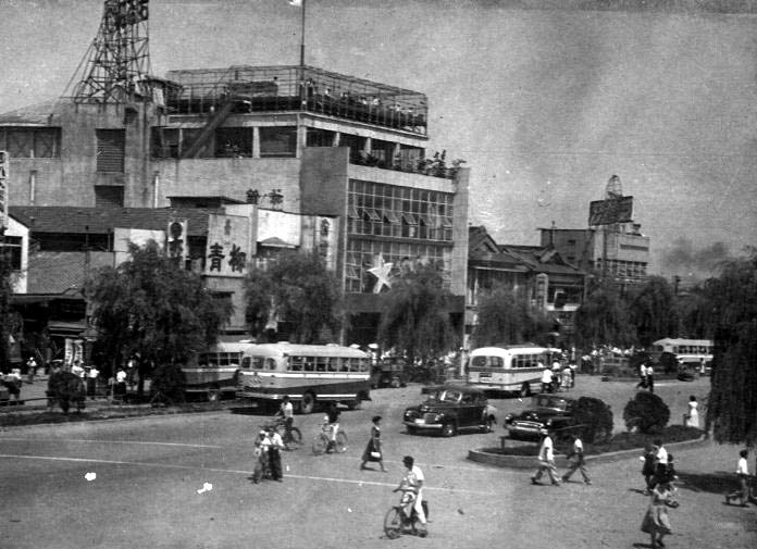 ビルの数も少ないようで道路には丸みを帯びたバスや乗用車に時代を感じます。 .