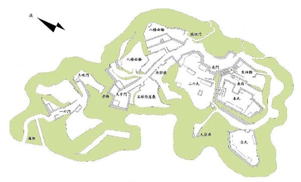 本丸六段石垣〜東曲輪〜長局周辺跡