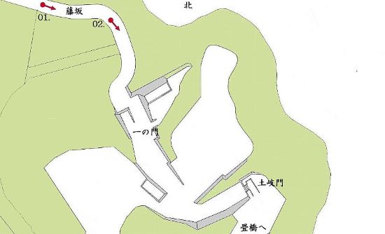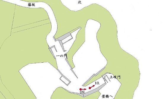 38. 八幡曲輪からの五郎作屋敷虎口跡