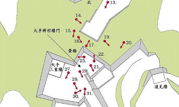 26. 大手枡形櫓門跡・三重櫓台・畳橋跡