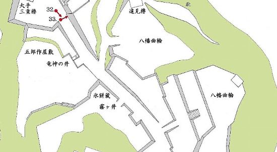 87. 本丸北虎口からの納戸櫓台と埋門二重枡形石垣