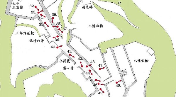 畳橋跡〜大手櫓門跡〜大手三重櫓跡〜五郎作屋敷北面周辺
