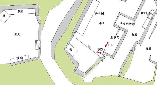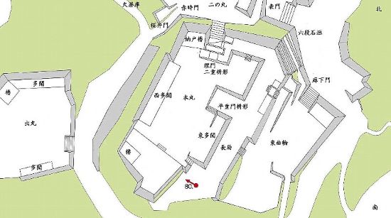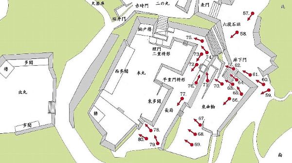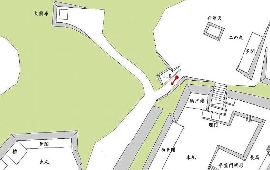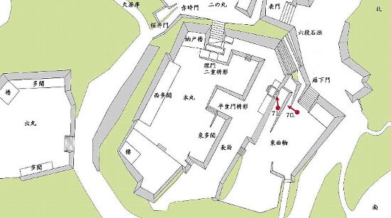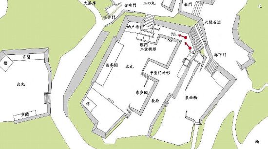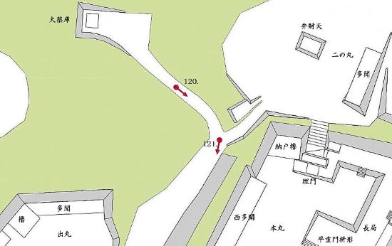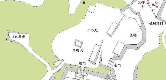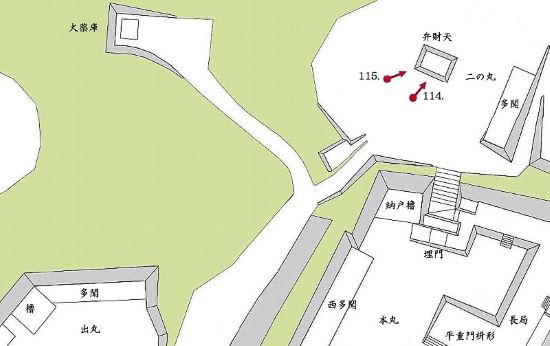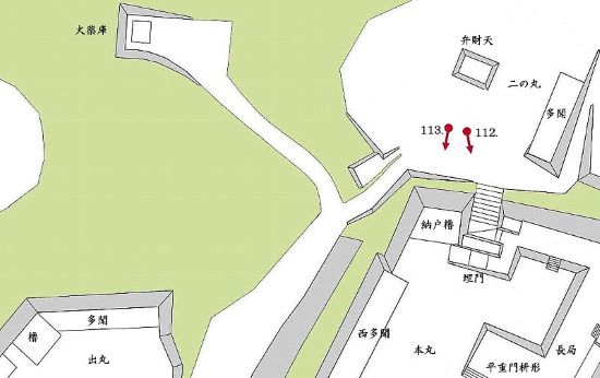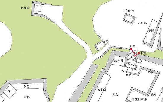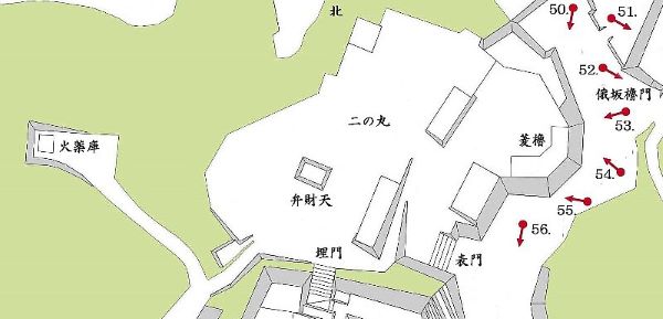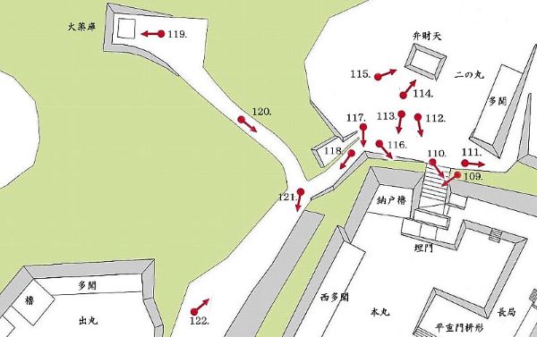 本丸埋門〜二の丸弁才天〜赤時門〜火薬庫周辺