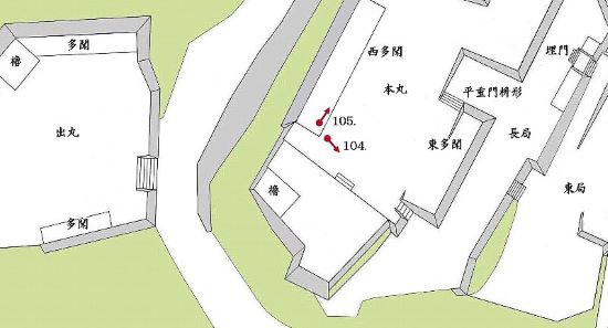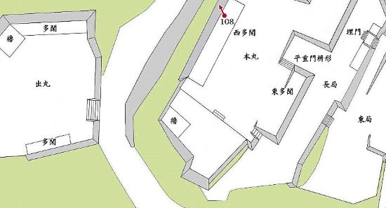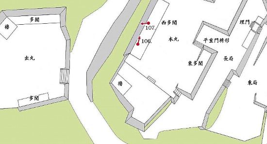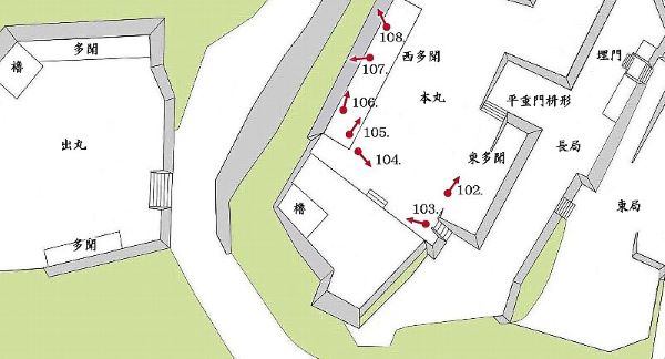 108. 本丸西面石垣下火薬庫への岐路と桜井門跡