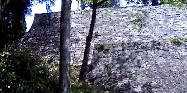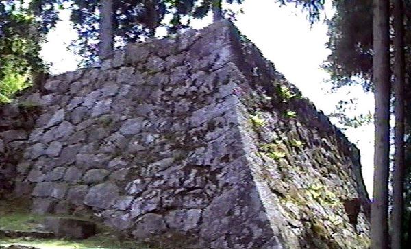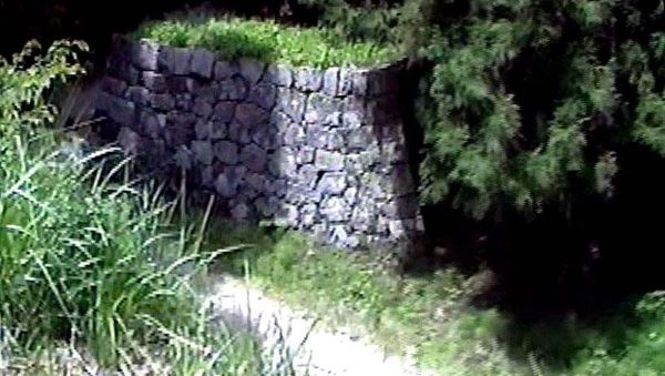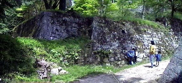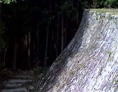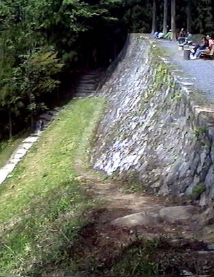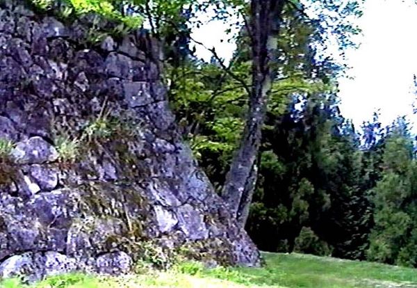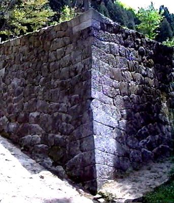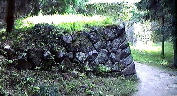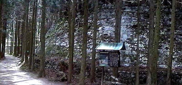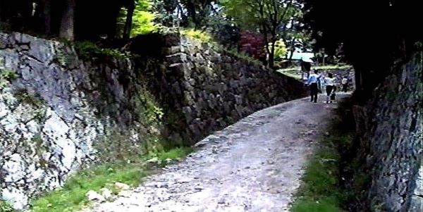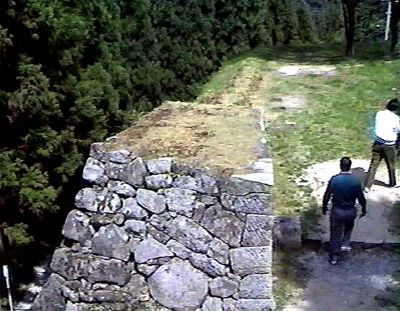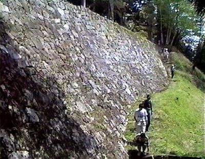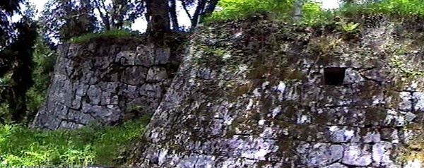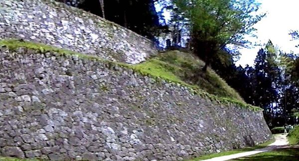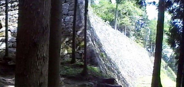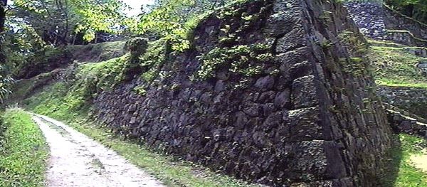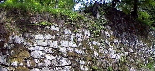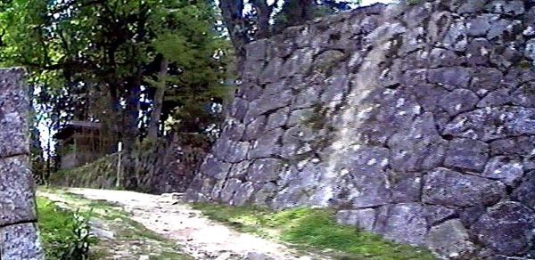 120. 火薬庫への道からの本丸西面と納戸櫓台石垣