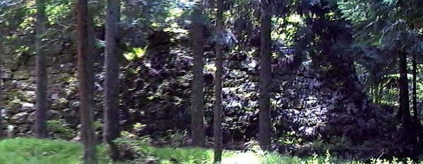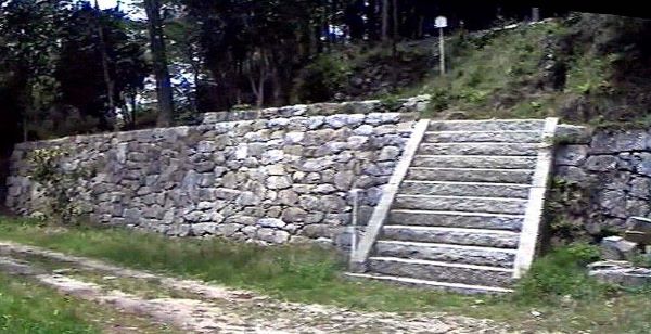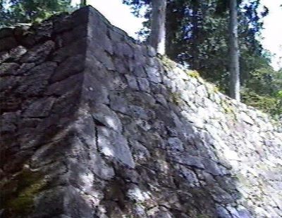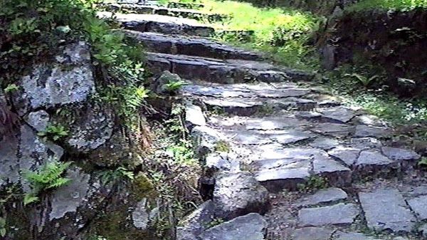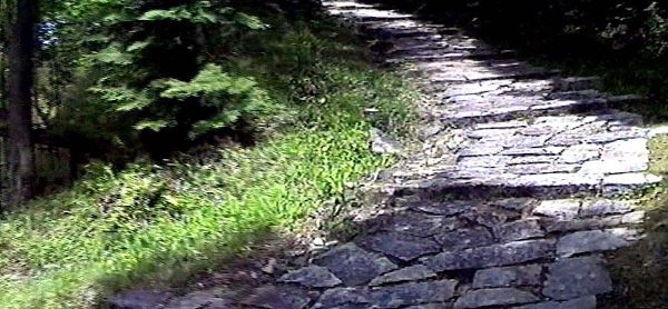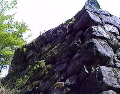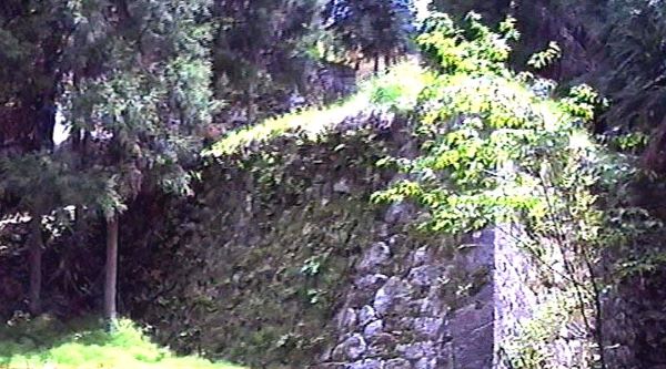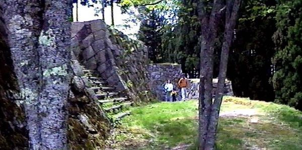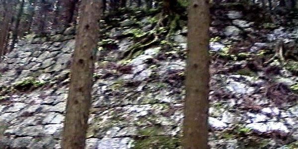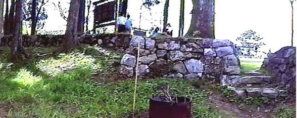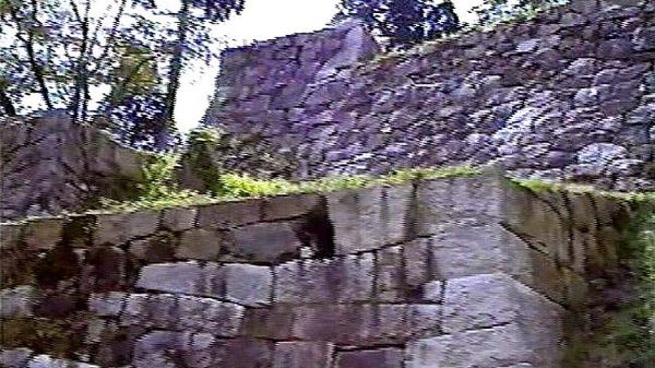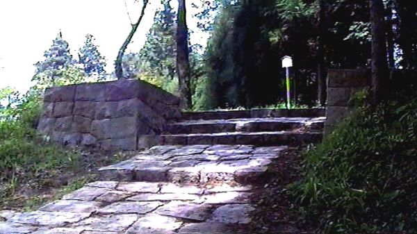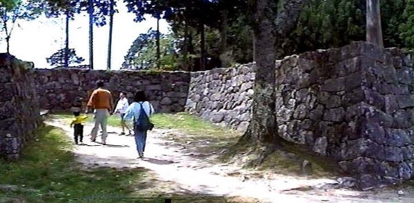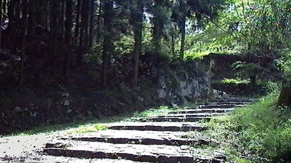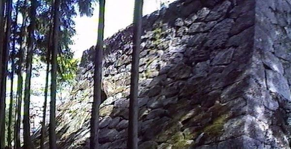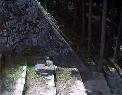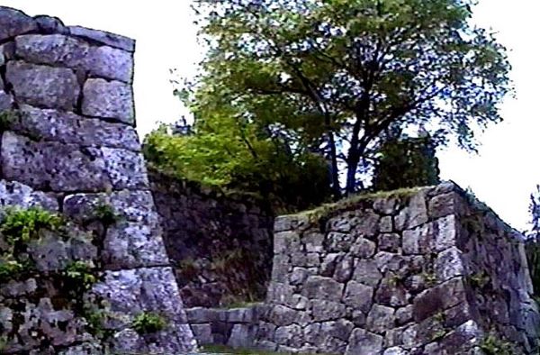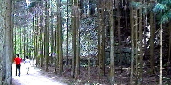 120. 火薬庫への道からの本丸西面と納戸櫓台石垣
