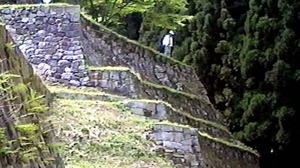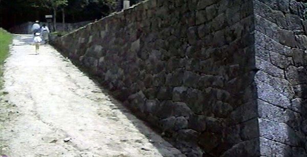 15-1. 空堀からの大手枡形平重門跡と三重櫓台の石垣