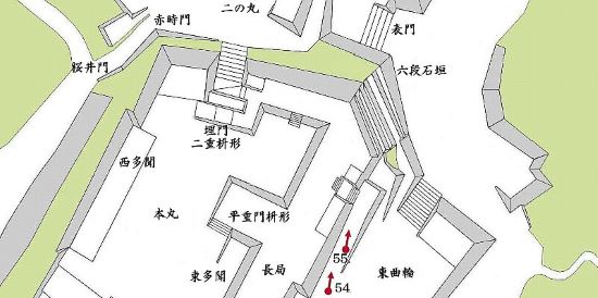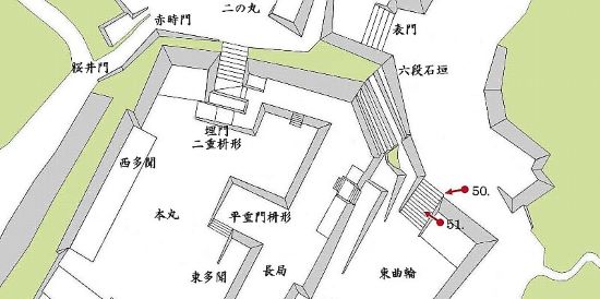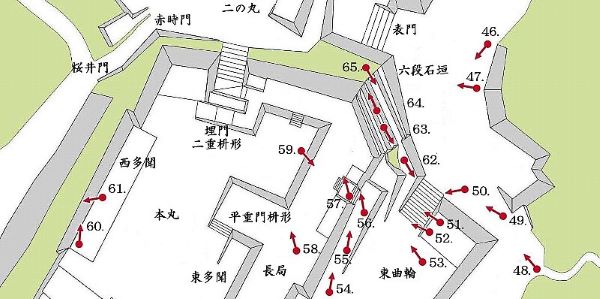 本丸六段石垣〜東曲輪廊下橋・長局埋門周・西多聞周辺