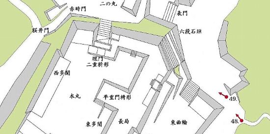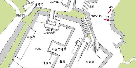 47. 本丸北面六段石垣・二の丸表門跡