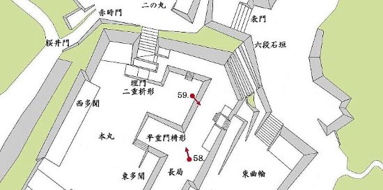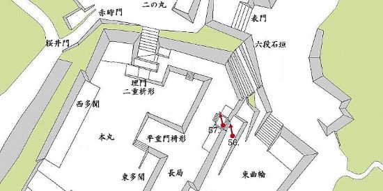 58. 本丸東面 平重門跡枡方前石垣