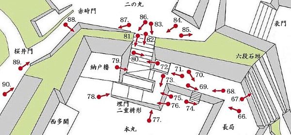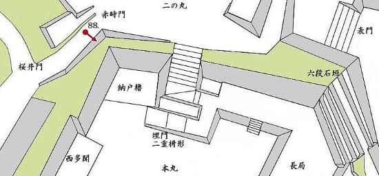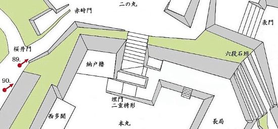 90. 本丸西面納戸櫓台と桜井門・赤時門跡