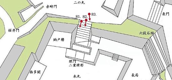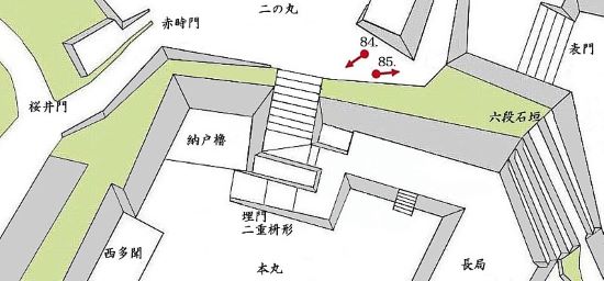 84. 二の丸からの本丸埋門二重枡形と納戸櫓台