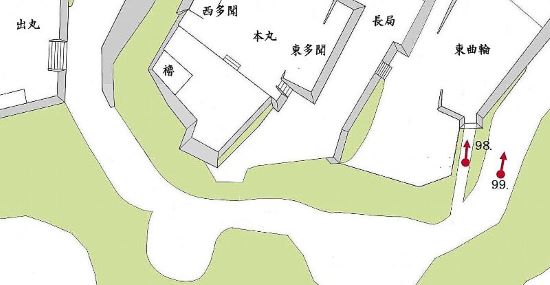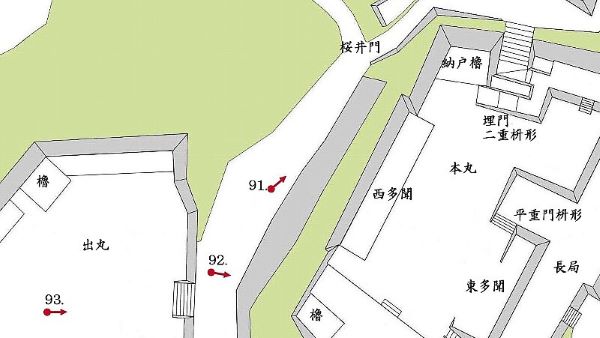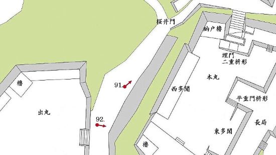 92. 出丸からの本丸西南角二重櫓台