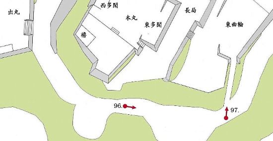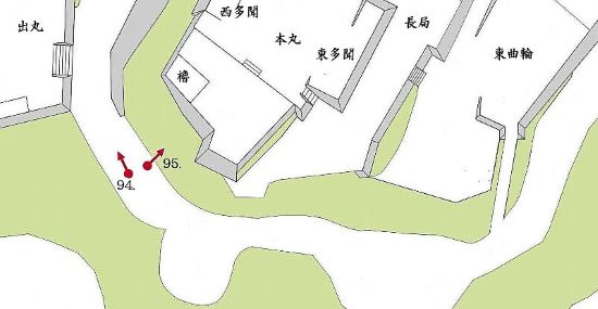 94. 出丸から本丸西南角二重櫓台下