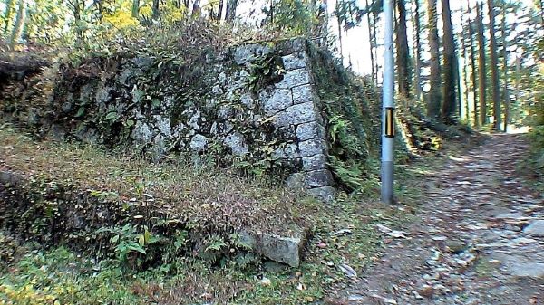 右が五郎作屋敷跡東北角石垣右手の石垣の最上部は以前