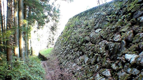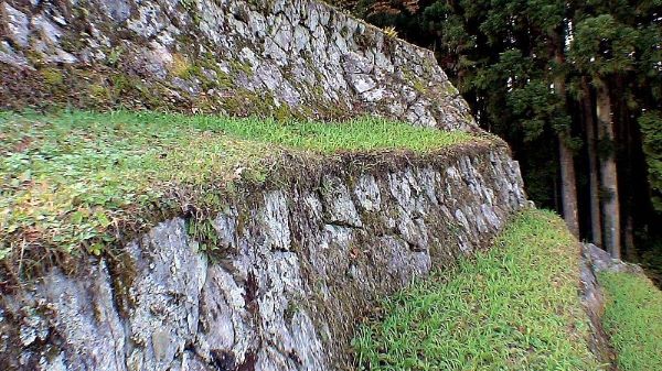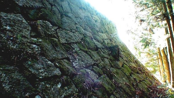 日光が当らなくなり自然苔類が石垣を覆い古城には苔むし