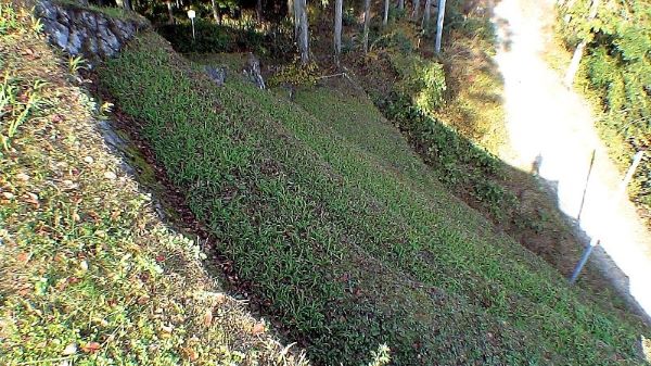 曲輪、本丸西面にはこのような植林はされていないので植林が城跡の維持に関