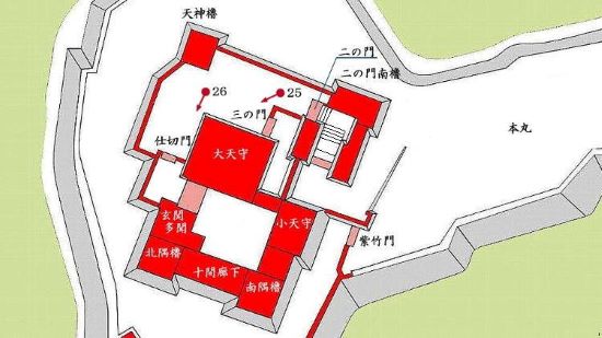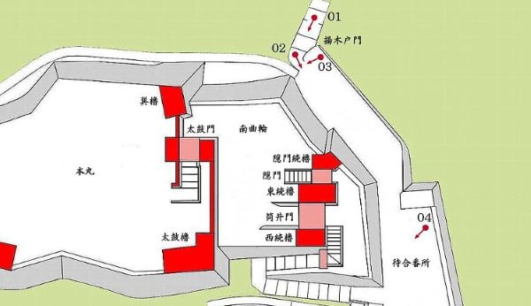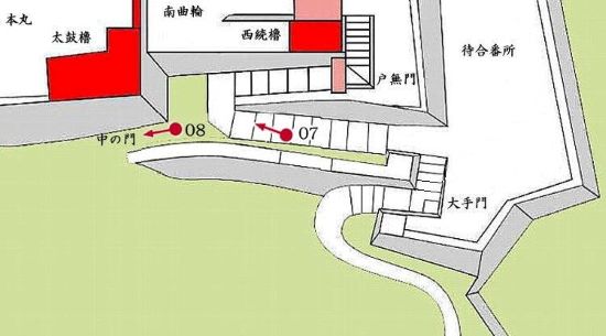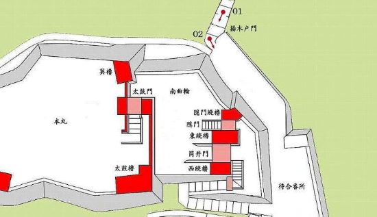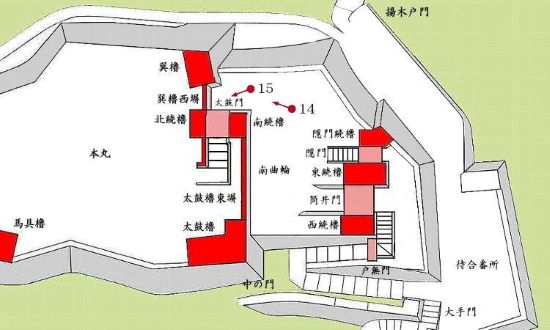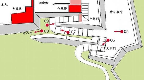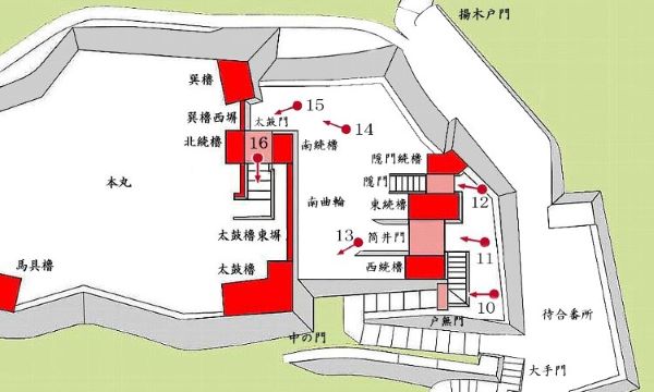 南曲輪筒井門から本丸太鼓櫓・太鼓門周辺