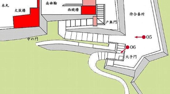 05. 大手門より南曲輪 太鼓櫓・腰曲輪西南角石垣