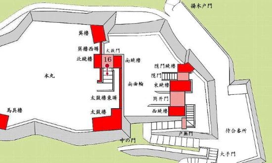 16. 本丸 太鼓門内からの太鼓櫓