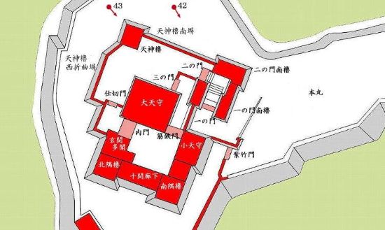 42. 天守曲輪 二の門南櫓・天神櫓南塀・大天守