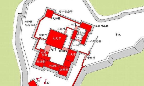 本丸から天守曲輪周辺