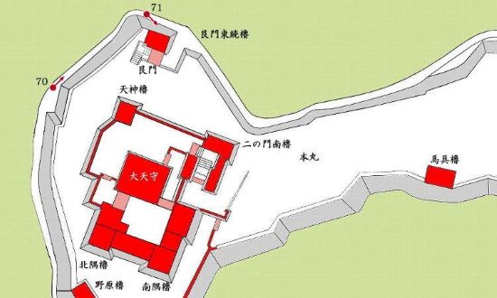 61. 本丸北曲輪 乾櫓と天守曲輪南隅櫓・小天守