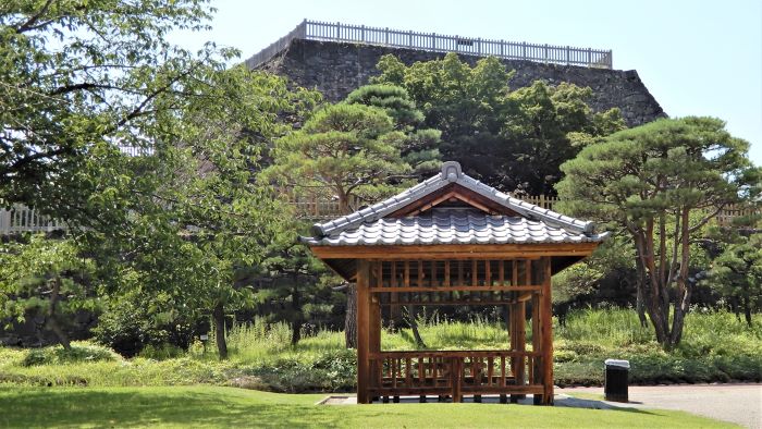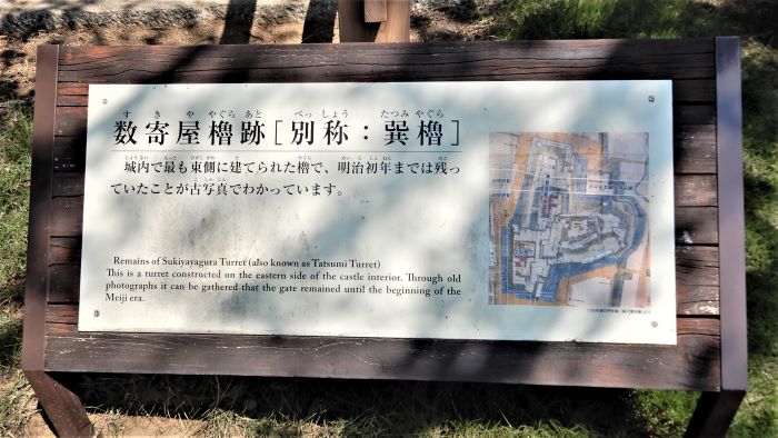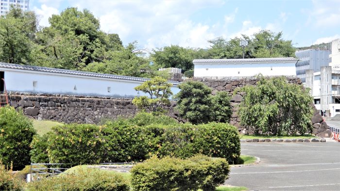 11 巽櫓台と数寄屋曲輪東面の石垣と土塀