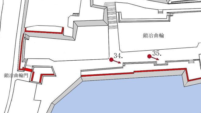 34. 鍛冶曲輪内土塀と石段