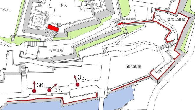 38. 鍛冶曲輪からの天守曲輪南面石垣