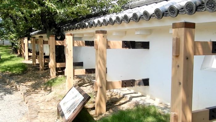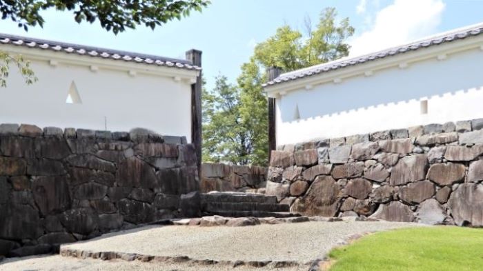 32. 鍛冶曲輪門からの鍛冶曲輪南面石垣と土塀