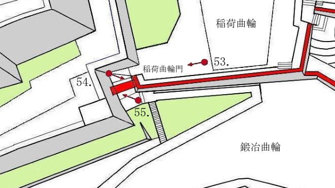55-1. 稲荷曲輪 稲荷曲輪門と天守曲輪 天守櫓台