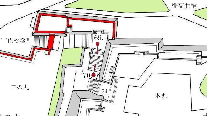 71-1. 内松陰門から本丸への石段と 銅門虎口