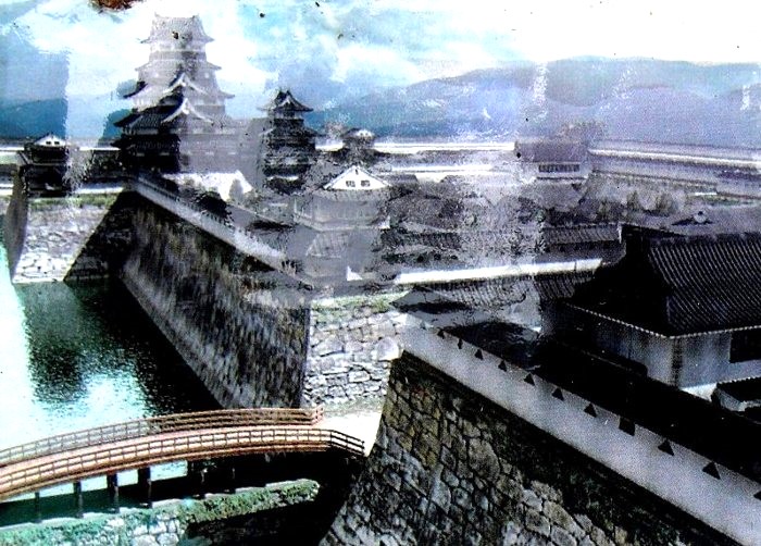 本丸想像図 本丸の石垣は会津若松城の西・北出丸に使われたという。