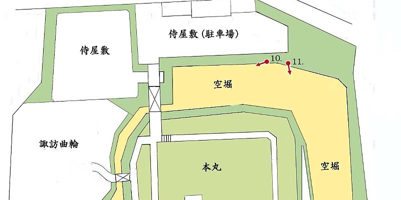 01-2. 侍屋敷跡(駐車場)から本丸への橋