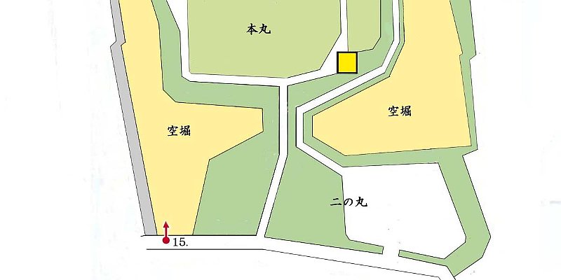 17. 二の丸からの本丸南面大手口土塁と空堀