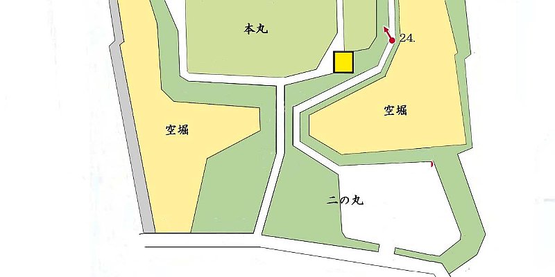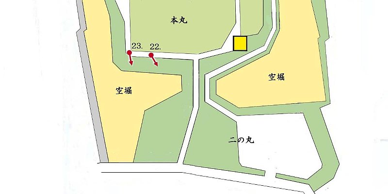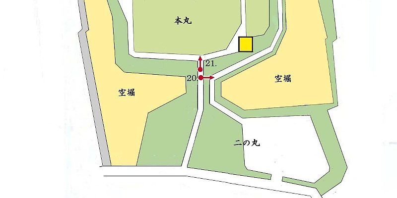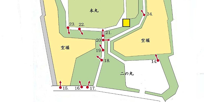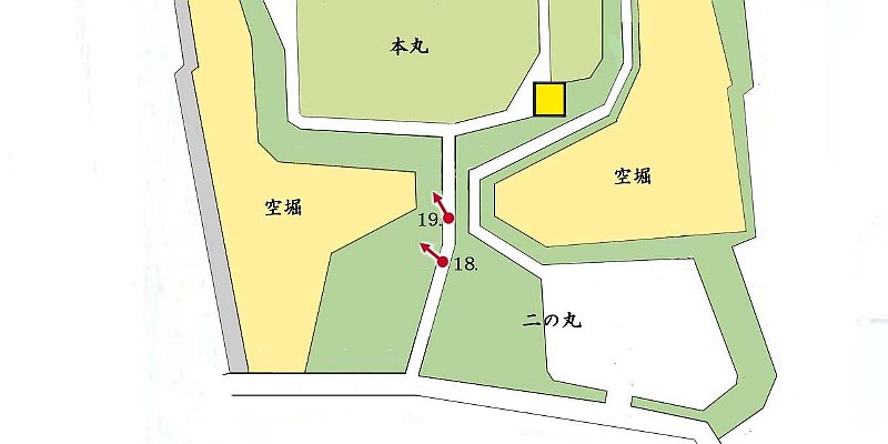 19. 二の丸からの本丸西面大手口土塁と空堀