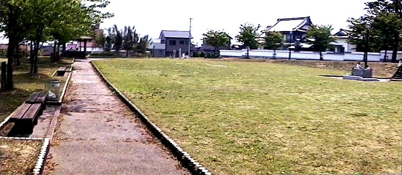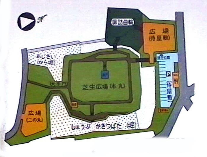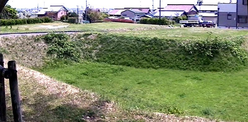 03. 本丸北面土塁からの侍屋敷(駐車場)