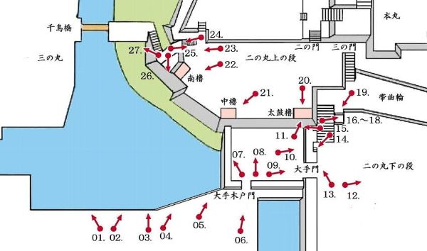 27. 二の丸上の段 南口門下からの三の丸千鳥橋