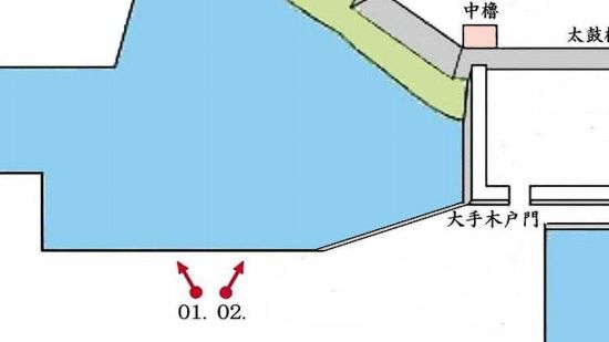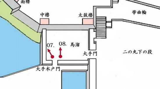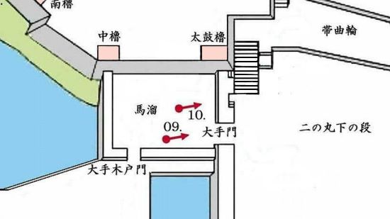 大手木戸門 馬溜から大手門・帯曲輪周辺
