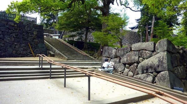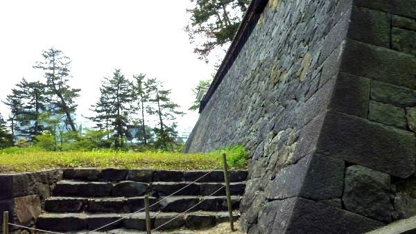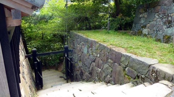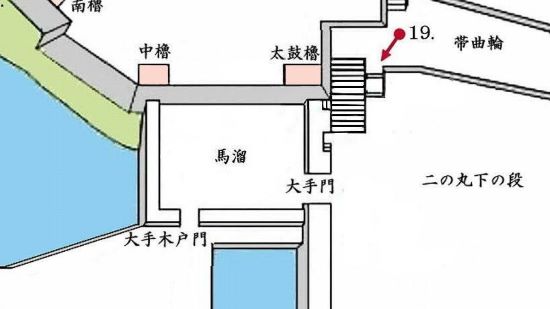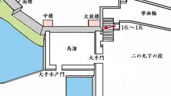15. 太鼓櫓下石段からの大手門石垣と雁木