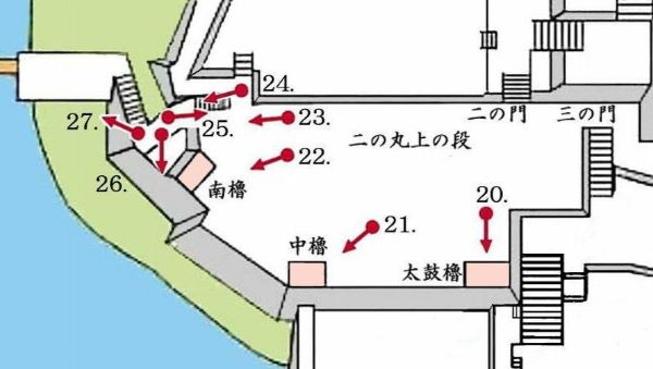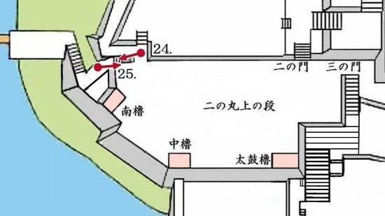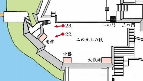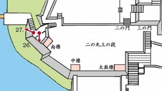 23. 二の丸上の段内 太鼓櫓から南口門へ (動画から)