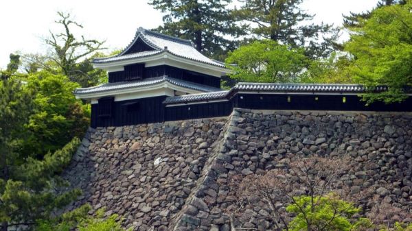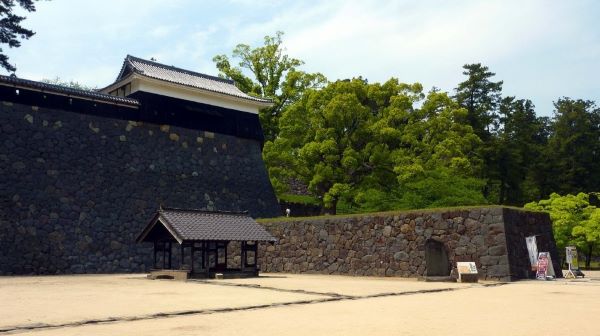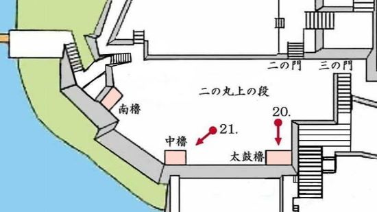 02. 二の丸上の段 東面石垣と南櫓(復元)・中櫓(復元)