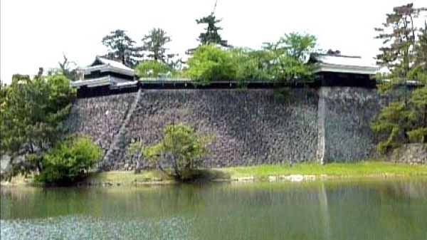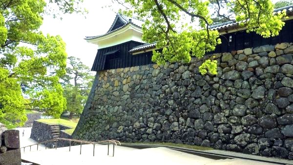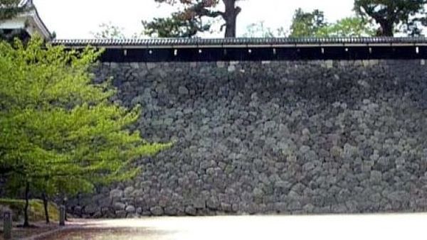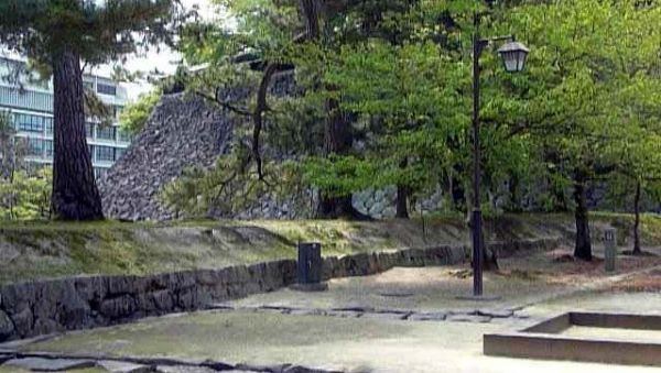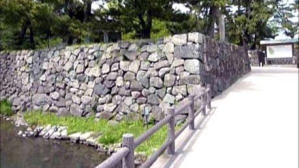 05-1. 大手前通りからの中櫓と大手馬溜南面石垣 (動画から)