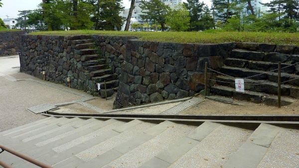 14. 太鼓櫓下石段からの大手門石垣と雁木