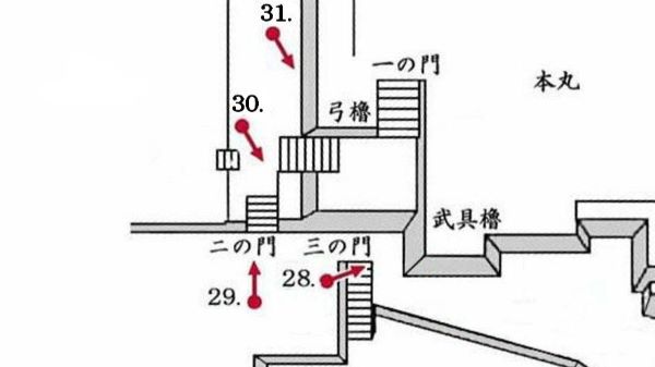 62. 二の丸帯曲輪からの二の丸上の段三の門跡