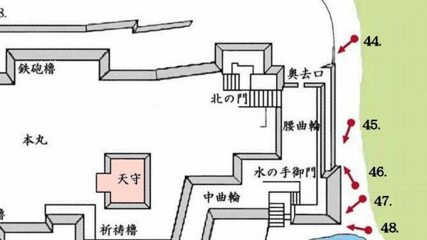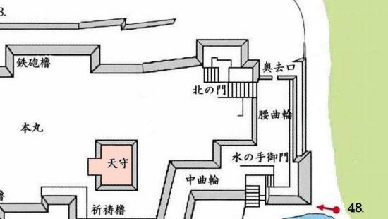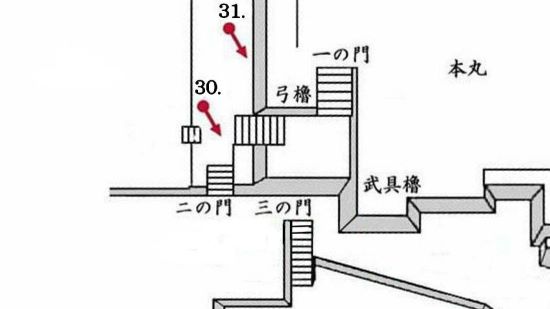 34-2. 本丸西南角 坤(ひつじさる)櫓台下西の門内跡