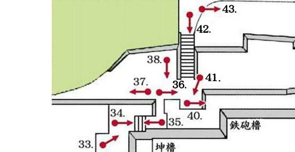 34-1. 本丸西南角 坤(ひつじさる)櫓台下西の門内跡